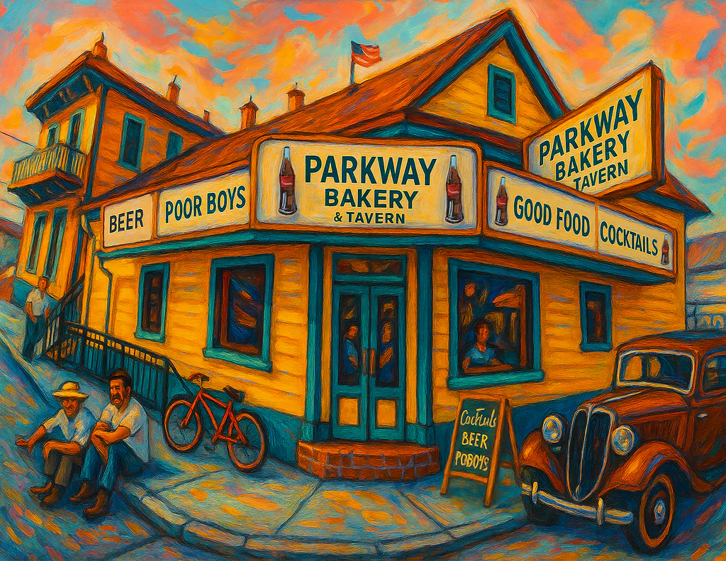 Parkway Bakery is located in Mid City/Bayou St. John neighborhoods. It is famous for huge, overloaded po-boys on fresh baked bread. Come eat at their indoor or outdoor tables, or call in an order to go with easy pickup.
