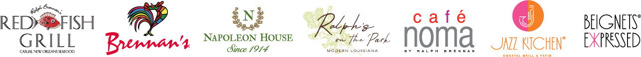 May be used at any Ralph Brennan Restaurant Group locations: Red Fish Grill, Brennan’s, Napoleon House, Ralph’s On The Park, Cafe Noma, Jazz Kitchen, and Beignets Expressed.