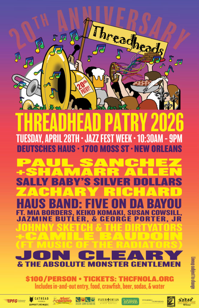 This year’s Threadhead Patry poster, signed by the musicians who will be performing.