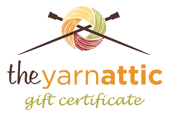 Gift Certificate to The Yarn Attic, a local yarn store in Hillsborough, NJ offering a broad selection of yarn, fiber, notions, and tools for knitters, crocheters, and weavers. The gift certificate may be redeemed on-line or in-person.